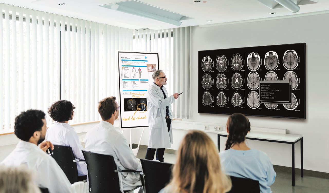 Ngày nay, rất nhiều bệnh viện đang sử dụng màn hình tương tác thông minh trong việc nâng cao chất lượng khám chữa bệnh, đồng thời tăng tính chuyên nghiệp trong mắt khách hàng. Màn hình cảm ứng với công nghệ cao sẽ giúp hiển thị thông tin liên quan đến sức khỏe, cảnh báo được rất nhiều loại bệnh nguy hiểm để phòng tránh. Ưu điểm này giúp tiết kiệm thời gian, công sức cho đội ngũ y bác sĩ hoặc chuyên viên tư vấn.