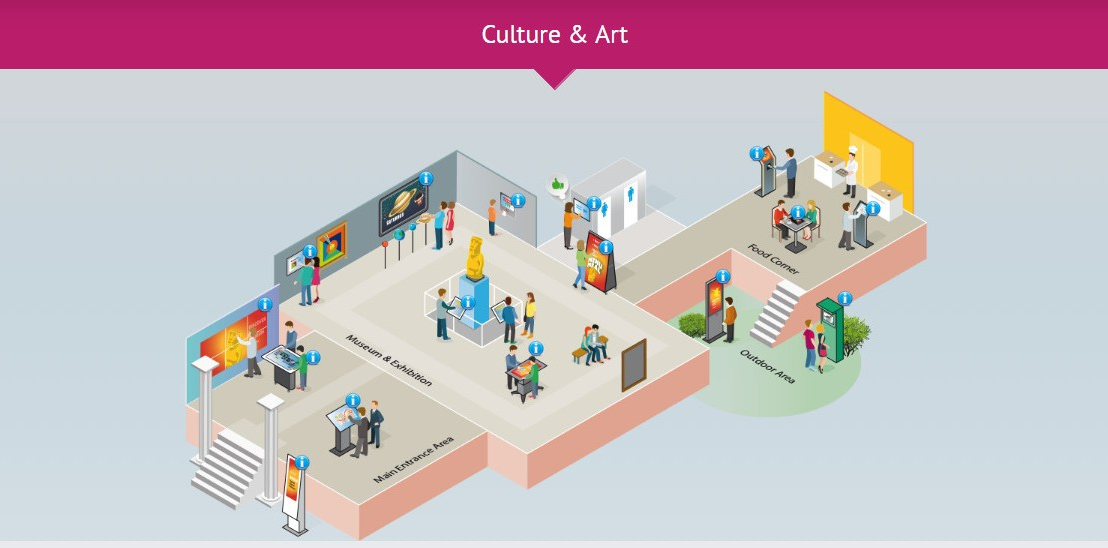 Bảo tàng - nơi trưng bày các hiện vật, các đồ dùng mang tính lịch sử lâu dài.Bảo tàng sẽ có rất nhiều tầng và khu khác nhau.Vì vậy để dễ dàng cho khách tham quan tìm hiểu.Trong bảo tàng sẽ gắn rất nhiều màn hình tương tác thông minh