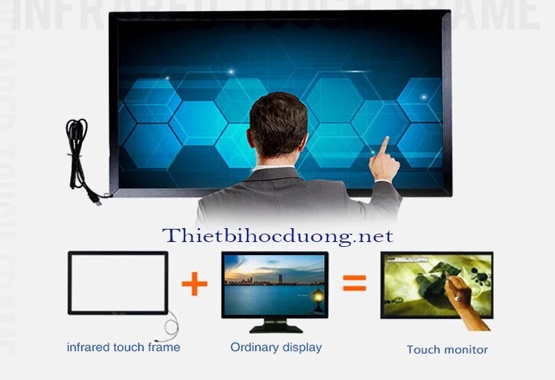 Thiết bị này bao gồm một khung cảm ứng và tấm kính cường lực trong suốt, được dán lên màn hình hiển thị. Việc kết nối nguồn điện sẽ thông qua đầu USB và một thiết bị dữ liệu như: máy tính, mini PC, android box giúp bạn dễ dàng thực hiện các chức năng.
