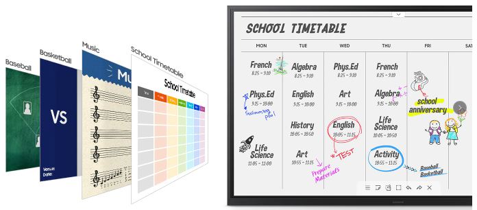 Ngoài ra, người dùng cũng có thể viết vẽ trên bất kỳ tài liệu, hình ảnh nào nhờ công cụ do Samsung Flip 2 WM85R hỗ trợ mà không sợ ảnh hưởng đến tài liệu gốc, từ đó sẽ giúp cho bài giảng, bài thuyết trình trở nên trực quan, sinh động hơn.