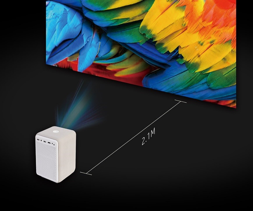 Với ống kính có phóng là 1.2, bạn có thể chiếu lên tới 80 inch chỉ với khoảng cách 2.1m, giúp bạn trải nghiệm cảm giác như đang ngồi trong một rạp chiếu phim lớn dù đang ngồi trong phòng của bạn hay bất cứ không gian nhỏ hẹp khác