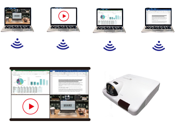 Chỉ cần có kết nối wifi, máy chiếu tương tác thông minh ANW355i có thể thực hiện trình chiếu không dây ở bất kì đâu sử dụng Hệ điều hành Window mà không cần phải có cáp HDMI, VGA hoặc RJ45, trở thành dòng máy chiếu không dây cực kỳ dễ dùng và tiện lợi.