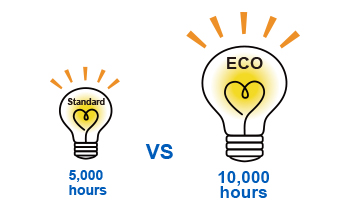 Tuổi thọ của đèn (H) 5000H (Bình thường) / 10000H (ECO)