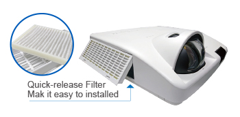 Máy chiếu tương tác thông minh ANW355STi được tích hợp hệ thống tự động phát hiện xem bộ lọc có bị chặn hay không, kiểm tra thể tích của không khí. Nó có thể chủ động đưa ra cảnh báo cần dọn sạch bộ lọc để bảo vệ và cải thiện tuổi thọ máy. Điều này khiến ANW355STi trở thành dòng máy chiếu siêu bền và thân thiện với người dùng.