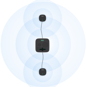 Loa hội nghị không dây Bluetooth với phạm vi thu âm giọng nói lên đến 9 mét, hỗ trợ đàm thoại toàn song công đa hướng.